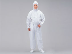 PPメルトブレーン不織布をベースとしたSMS不織布製のつなぎ服です。通気性と柔軟性に優れ、良好な防塵性能を誇ります。